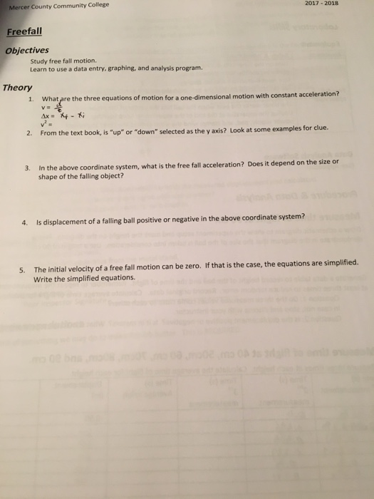 Solved Study Free Fall Motion Learn To Use A Data Entry Chegg Com