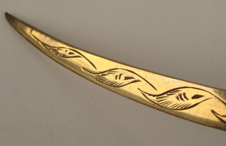 Vintage Brass Sword Letter Opener Curved Saber 8 Long Etched Feathers India Ebay