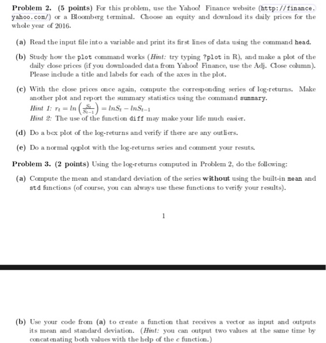 For This Problem Use The Yahoo Finance Website Chegg Com