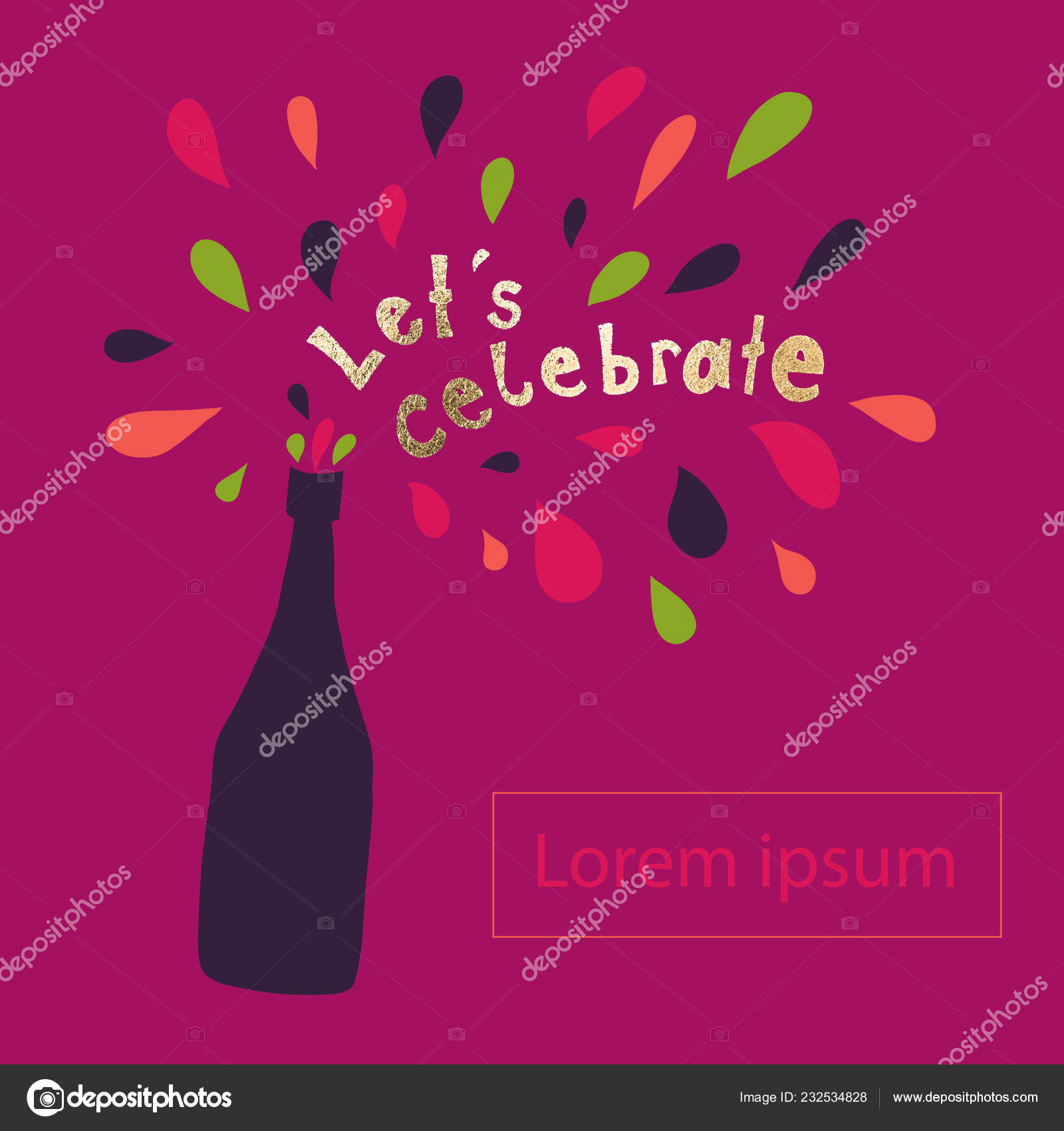 Let Celebrate Vector Illustration Lets Celebrate Lettering Champagne Bottle Colorful Vector Image By C Studio Sandrahutter Com Vector Stock 232534828