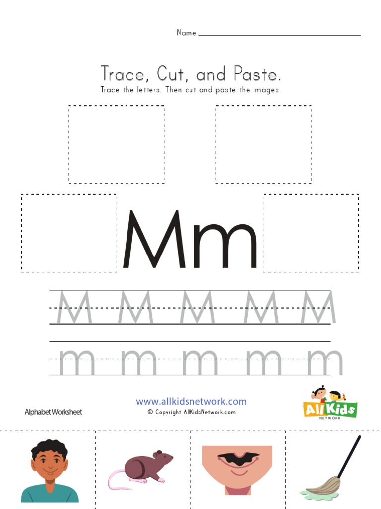 Trace Cut Paste Letter M Worksheet